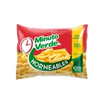 Deliciosas papas pre fritas de la marca Minuto Verde, listas para calentar y servir en pocos minutos. Un acompañamiento perfecto para tus comidas o como snack.